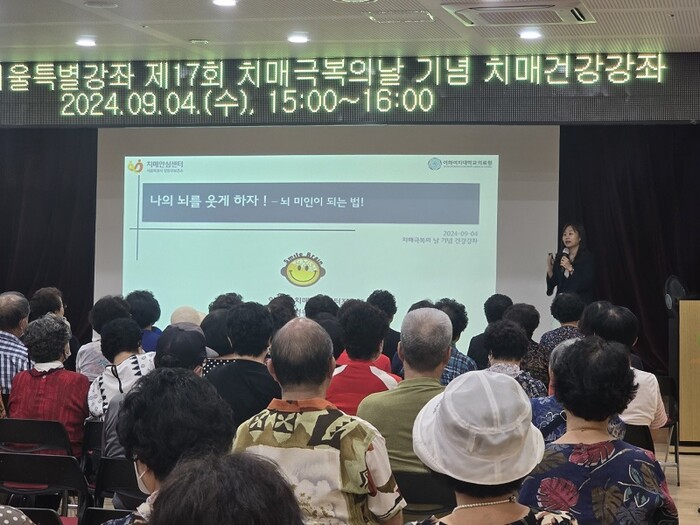 [시민일보 = 박소진 기자] 양천구보건소 치매안심센터는 지난 4일 서서울어르신복지관에서 ‘치매극복의 날(9월 21일)'을 기념해 치매 건강강좌를 성황리에 마쳤다.