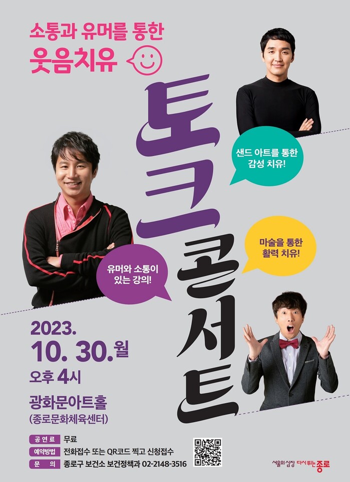 종로구는 “웃음은 우리 몸과 마음에 긍정적 영향을 주는 만병통치약”이라며 “웃음 치유 토크 콘서트에 참여해 잠시나마 일상을 뒤로 하고 마음껏 웃을 수 있는 시간을 가져보길 추천한다”라고 말했다.