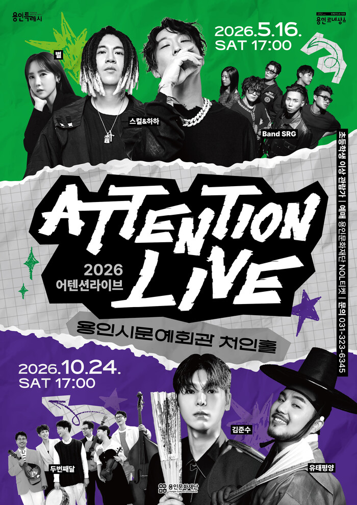 [용인=오왕석 기자] 용인문화재단은 용인시문예회관 처인홀에서 청년층을 주요 대상으로 한 라이브 공연 브랜드 <2026 어텐션 라이브>를 상·하반기 두 차례에 걸쳐 개최한다.