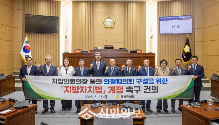 | ▲ 해남군 의원 일동, 지방의회의장 등의 의정협의회 구성을 위한 지방자치법 개정 촉구 자료사진 / 해남군의회 제공 |