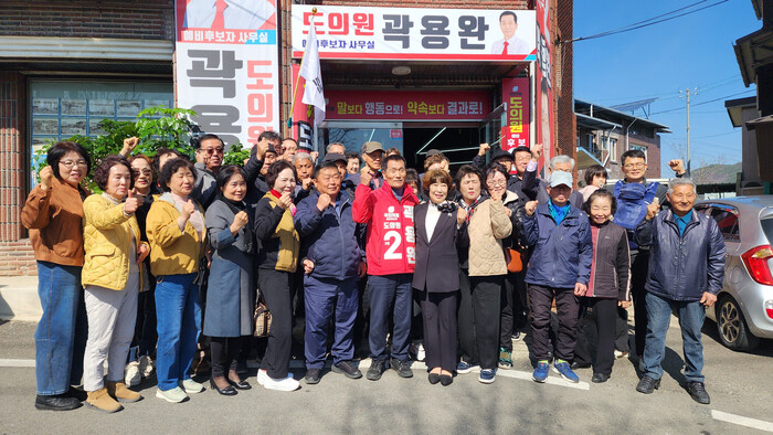 | 곽용완 예비후보가 17읍면지지자들과 필승을 다짐하는 모습 |