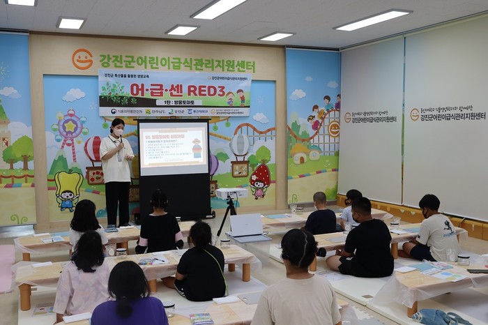 | ▲ 강진군 어린이급식관리지원센터, 관내 지역아동센터 어린이 대상 특산품 영양교육 / 사진=강진군 제공 |