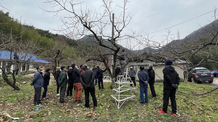 | ▲ 영암군 농업기술센터, 관내 농업인 대상 과수목 정전 현장 기술교육 / 영암군 제공 |