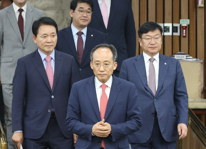 추 원내대표는 소속 의원 전원과 당원에게 서한을 보내 특검법 부결을 호소하는 등 연일 내부 단속에 나서고 있다.
