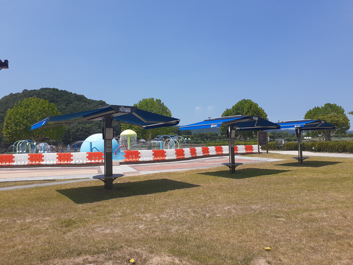 그늘막은 물놀이장이 있는 공간 3곳과 황강과 함벽루를 조망할 수 있는 공간 3곳 등 총 6곳에 설치되었으며, 한여름 무더위를 피해 공원을 찾는 이용객들에게 쉼터를 제공할 것으로 기대된다.