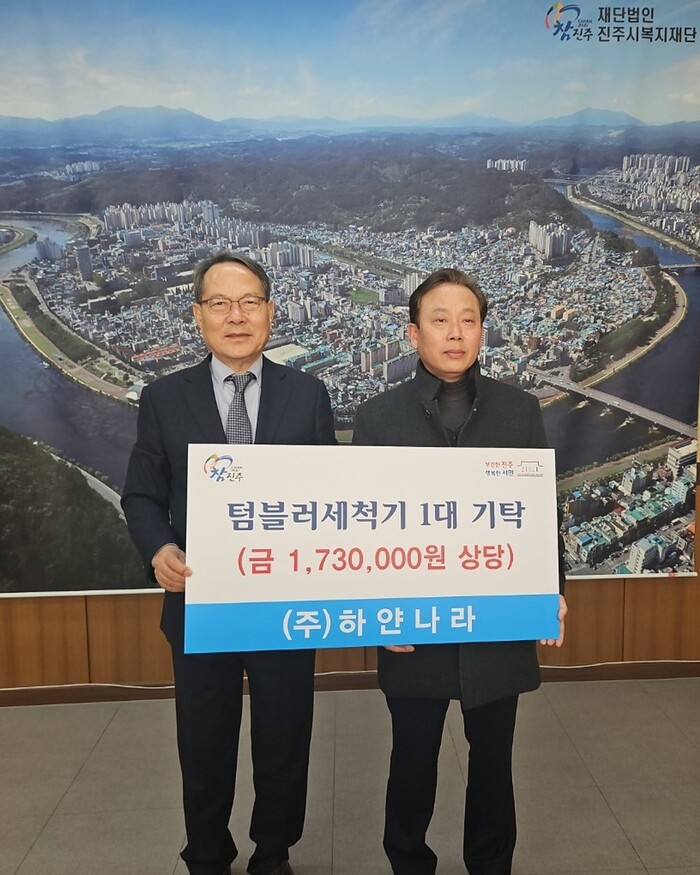 ㈜하얀나라(대표 오남식)은 지역사회 장애인 후원을 위한 에코지 텀블러 세척기 1대(환가액 173만 여원)를 진주시복지재단(이사장 이성갑)에 기탁했다고 30일 밝혔다.