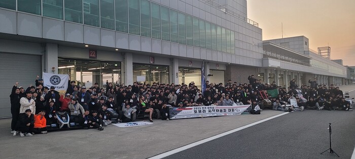 | ▲ 영암군이 지난 25~26일까지 삼호읍 소재 영암국제자동차경주장에서 개최한, 대학생포뮬러자작자동차대회에 참가한 대학생들 기념촬영 / 영암군 제공 |