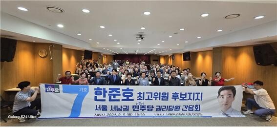 지난 5일 오후 6시30분 서울약사협회 5층 대강당에서 ‘한준호 더불어민주당 최고위원 후보를 지지하는 서울 서남권 권리당원 간담회’가 개최됐다.
