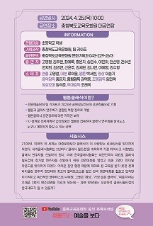 지선호 교육문화원장은 “충북의 훌륭한 아티스트와 함께하는 기획공연을 개최함으로서 지역문화예술 소통의 장을 활성화하고 문화예술에 종사하는 아티스트의 역량강화에 보탬이 될 수 있도록 노력하겠다.”라고 전했다.
