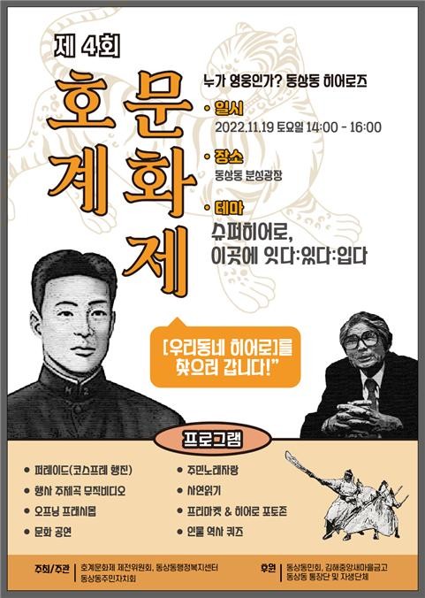 호계문화제는 김해시 동상동을 대표하는 행사로 올해는 ‘슈퍼히어로, 이곳에 잇다:있다:입다’라는 주제로 동상동을 배경으로 과거부터 현재까지의 영웅을 찾아 나설 계획이다.