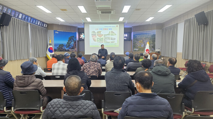 이번 교육은 식물방역법 개정에 따른 과수화상병 예방을 위한 필수교육 이수가 의무화 됨에 따라 농업인 준수사항 동영상 시청 및 사과 주요 병해충 방제 교육이 함께 진행했다.