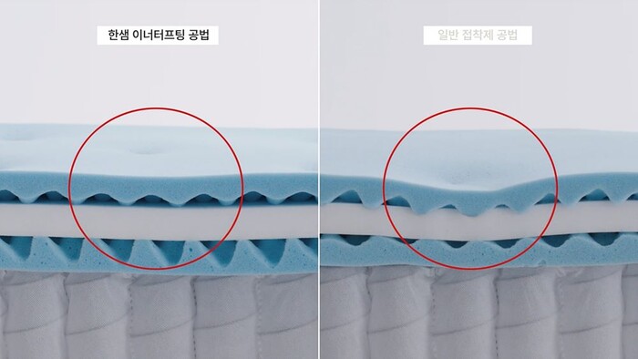 이너 터프팅 공법은 매트리스 충전재를 접착제 없이 연결하는 기술이다. 복원력이 뛰어나 매트리스가 쉽게 꺼지지 않도록 유지하며, 사용자의 움직임에 유연하게 반응한다. 이는 오랜 시간 동안 편안함과 내구성을 유지할 수 있도록 도와준다.