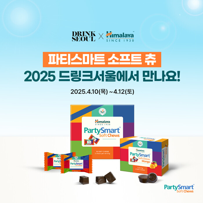 히말라야코리아는 오는 오는 4월 10일부터 12일까지 서울 코엑스에서 개최되는 ‘2025 드링크 서울’ 행사에서 파티스마트 소프트 츄를 선보인다. 행사 기간 동안 방문객을 대상으로 히말라야 파티스마트 츄 2개입(믹스베리/망고 랜덤 제공)을 무료로 제공할 예정이다.
