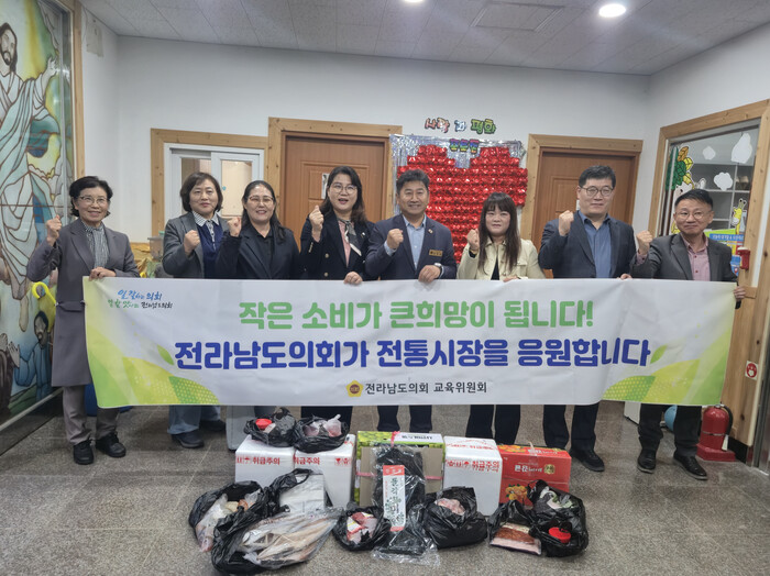한편, 전남도의회 교육위원회는 전통시장 장보기ㆍ캠페인을 30일 순천 옷장과 31일 목포 신청호시장에서 이틀간 실시했으며 지역경제 살리기와 나눔 문화 확산을 위해 도내 복지시설 기부 활동을 병행하고 있다.