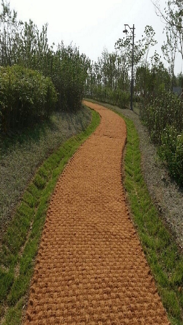 또한 야자매트 자체에 잡초가 잘 자라지 않게 하는 효과도 있어 산책길 정비에도 유용하다.