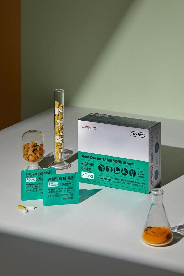 ‘관절닥터 타마본 5Days’는 핵심소재 ‘타마플렉스’에 관절·연골 건강에 도움을 줄 수 있는 기능성 원료인 NAG(N-아세틸글루코사민)과 비타민K, 망간, 비타민E, 비타민D 등을 더한 차별화된 배합으로 한국인의 건강을 잘 아는 125년 정관장의 노하우를 담았다.