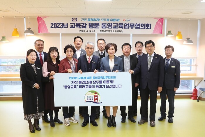 5일 통영교육지원청에서 열린 지역교육업무협의회는 ‘모두를 이롭게 하는 통영특색교육 활성화 방안’을 주제로 다양한 의견이 오갔다. 천영기 통영시장과 시의회 의장, 도의원 등이 참석한 간담회에서는 통영 지역 자원을 활용한 학생 지원 방안, 학생 체험 활동 체험처 확충 등을 논의했다. 이어 지역 학교장, 학부모, 학교운영위원 등이 참석한 협의회에서는 통영 역사 교육, 문화예술 교육, 생태환경 교육의 발전 방안을 모색했다.