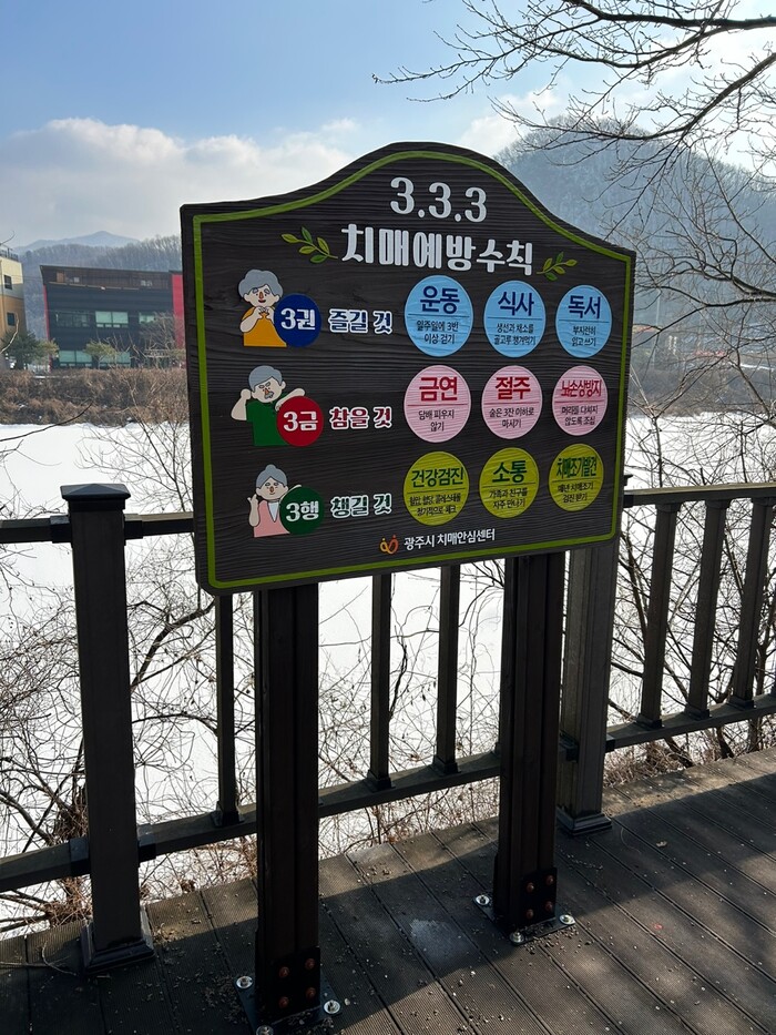 | ▲ 3.3.3 치매예방 수칙이 적힌 안내표지판. |