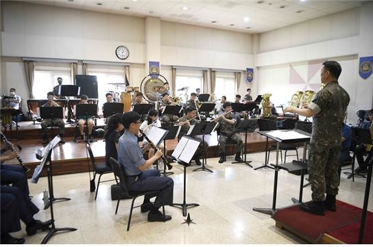 | ▲ 3함대 군악대원들과 은광학교 학생들이 함께 악기를 연주하고 있다. (사진제공=조원혜 중사). |