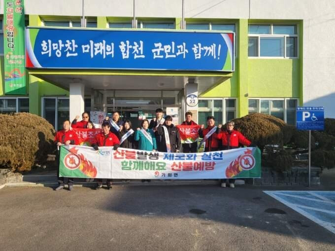 [합천=이영수 기자] 합천군 가회면(면장 조홍숙)에서는 24일 설날을 전후한 시기에 입산자 증가로 산불발생 위험성이 높고, 건조한 날씨가 지속될 것으로 예상되어 산불감시원 및 직원들과 함께 산불예방캠페인을 실시했다.