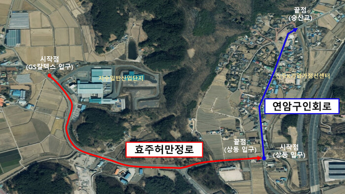 ‘연암구인회로’는 LG그룹 창업주인 연암 구인회 회장의 이름을 딴 도로명으로 지수면 지수로 일부 구간인 상동마을 입구에서 승산교까지 구간에 부여한다.