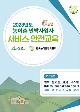 [밀양=최성일 기자] 밀양시는 오는 9월 7일부터 11월 30일까지 농어촌민박 사업자 265명을 대상으로 안전 의식 제고 및 서비스 정신 함양을 위한 서비스·안전 교육을 실시한다.