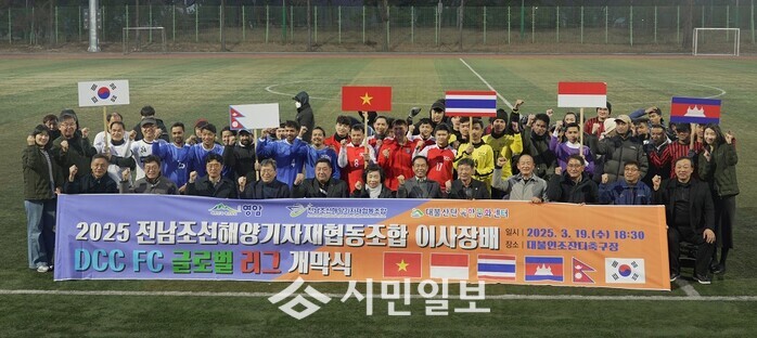 전남조선해양기자재협동조합 이사장배 ‘대불산단복합문화센터(DCC) 글로벌 리그’가 이날 대불인조잔디축구장에서 네팔FC팀과 태국FC팀의 개막경기로 시작을 알렸다.