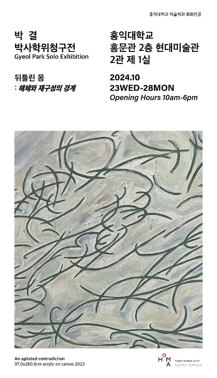 홍익대학교 일반대학원 미술학과 회화전공 박결 작가의 박사학위 청구전이 10월 23일부터 28일까지 홍익대학교 홍문관 2층 현대미술관 2관 제1실에서 개최된다.