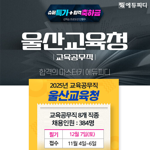 이에 에듀피디가 선보이는 2025년 울산시교육청 교육공무직 채용 시험 맞춤 ‘합격패키지’ 강좌는 ‘인성검사+직무능력검사+면접시험을 모두 준비할 수 있도록 최신 출제 경향에 맞춘 전문 커리큘럼을 선보인다.