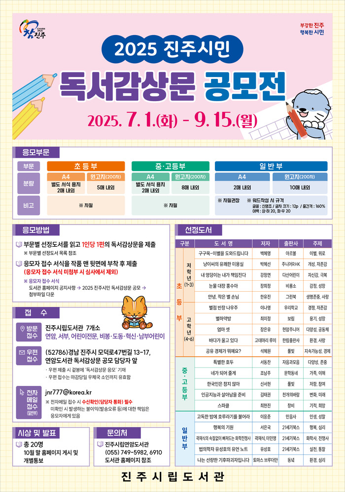 | ▲ 2025 진주시민 독서감상문 공모 포스터 |
