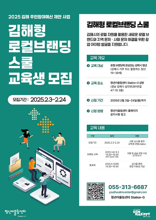 교육과정은 오는 3월 8일부터 5월 3일까지 9주간 청년어울림센터(Station-G 삼방)(김해시 삼안로291번길 47-15)에서 진행된다.