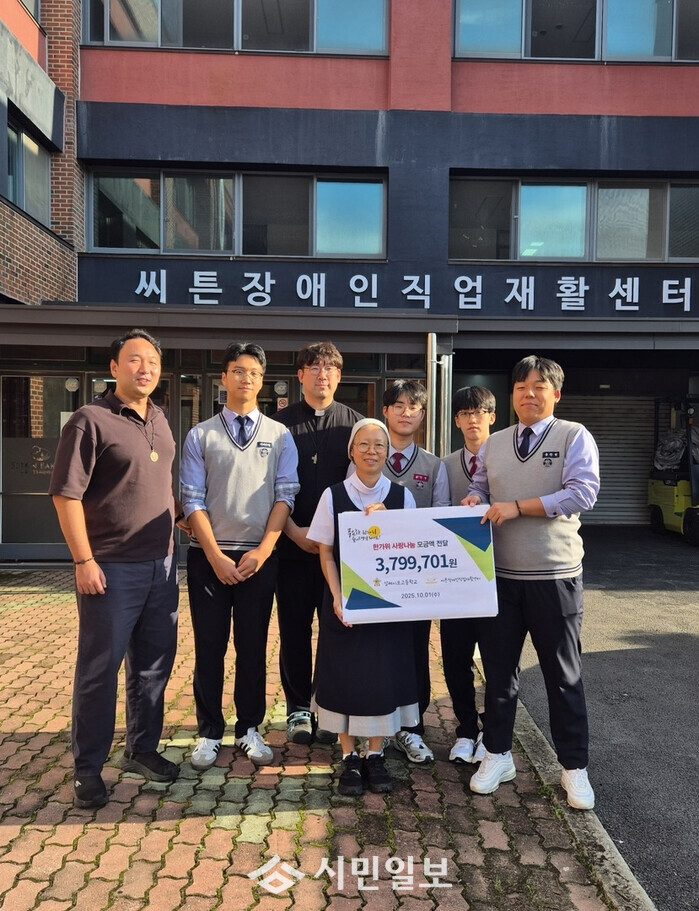 이날 행사는 살레시오고 유상철 신부와 학생회 대표, 교직원 등은 씨튼장애인직업재활센터(광주 북구 소재)를 직접 방문해 성금 370여 만 원을 전달했다.