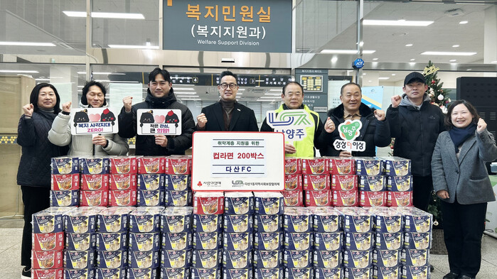 다산 FC 회원들이 자발적으로 마련한 컵라면 200개는 지역사회보장협의체를 통해 지역 내 도움이 필요한 이웃에게 배분될 예정이다.