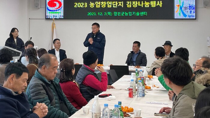격려차 방문한 김배성 합천군농업기술센터 소장은 “귀농·귀촌 정착을 위해 가장 중요한 것은 주민들과 갈등을 최소화하고 서로 융화하여 동행하는 것이다”며 “앞으로도 합천군은 모두가 행복하게 어우러질 수 있는 다양한 융화 프로그램을 적극 추진하겠다”고 전했다.