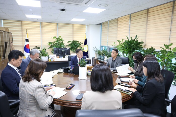| ▲ 구로구가 18일 오전 구로구의회 의장실에서 구로구청장 권한대행과 구의회 의장단 간담회를 개최했다. (사진=구로구청 제공) |