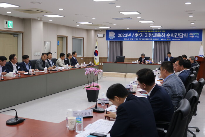 [남악=황승순 기자]대한체육회 이기흥 회장은 8일(월) 전라남도체육회관에서 전라남도체육회 및 22개 시·군체육회를 대상으로 2023년 상반기 순회 간담회를 개최했다.