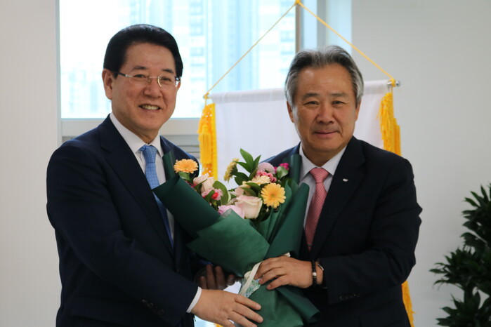 | ▲ 김영록 전라남도지사의 환영기념 꽃다발 전달식(출처=전남도체육회) |