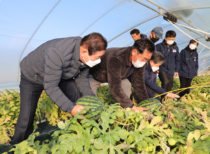 | ▲ 겨울수박 첫 출하현장 방문사진 |