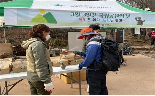 | ▲ 제1회 국립공원의 날 주간행사 식물나눠주기 모습(출처=월출산국립공원) |