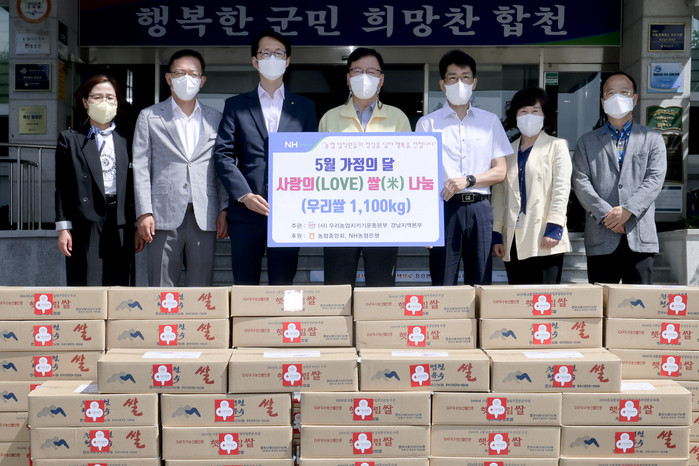 (사)우리농업지키기운동본부 경남지역본부(본부장 류승완)가 농협은행(주) 합천군지부(지부장 강문규)와 함께 26일 합천군청을 방문해 사랑의 쌀 10kg 110포를 기탁했다.