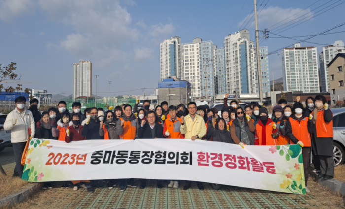 이날 행사는 중마동 주민센터에서 1월 2차 통장 회의를 마친 후 마동체육공원 주차장으로 집결해, 깨끗한 도시이미지 제고를 위해 도로변과 공원을 중점적으로 청결 활동을 펼쳤다.
