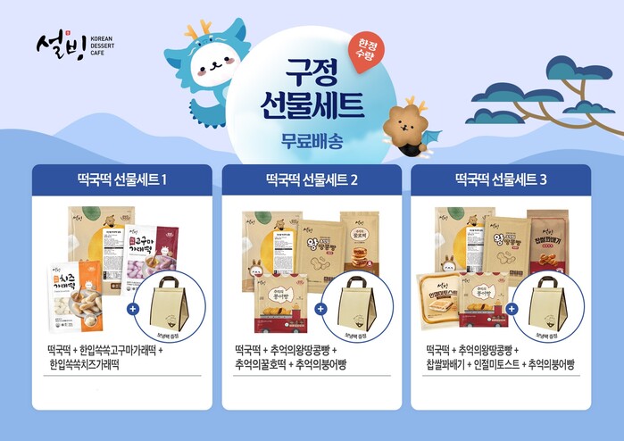 한편 설빙에서 이번 구정 선물세트 떡꾹떡 선물세트 구입 시 설빙 마스코트인 설동이, 별동이가 디자인돼 있는 보냉가방을 증정한다.