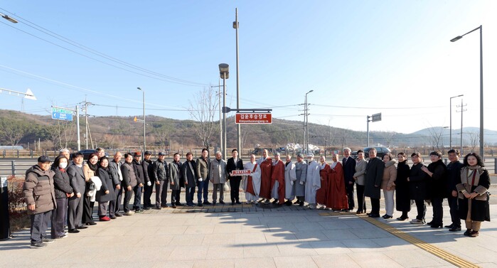 행사에는 이상일 시장과 용인시불교사암연합회 정호스님을 비롯해 지역의 불교계 인사와 신도 등 약 50여명이 모여 명예도로명판 제막식을 축하하고, 역사적 의미를 기리는 시간을 가졌다.
