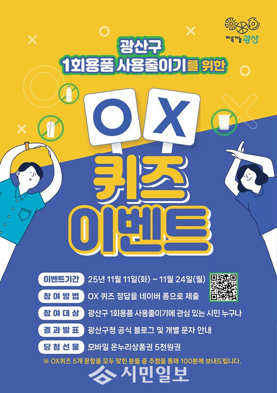 광산구 관계자는 “일상의 작은 실천이 환경 보호에 큰 힘이 된다”며 “일회용품 사용 줄이기에 대한 시민들의 관심과 참여가 더욱 확산되길 바란다”고 전했다.