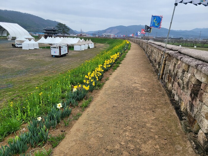 [강진=정찬남 기자] 전남 강진군이 오는 29일부터 31일까지 주최하는 ‘제27회 전라병영성축제’를 앞두고 병영성 성곽 산책로 1km 구간에 아름다운 수선화가 꽃을 피워올리며 축제 분위기를 띄우고 있다.