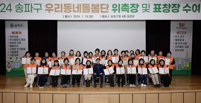 서강석 구청장은 “지역 주민들로 구성된 우리동네돌봄단과 같은 인적 안전망이 고독사를 예방하는데 큰 도움이 될 것으로 기대한다”며, “앞으로도 우리동네돌봄단을 통해 사회적 고립 및 경제적 어려움에 처해있는 취약계층을 가까이서 직접 소통하고 살펴, 돌봄사각지대 없는 송파구를 만드는데 최선을 다하겠다”고 전했다.