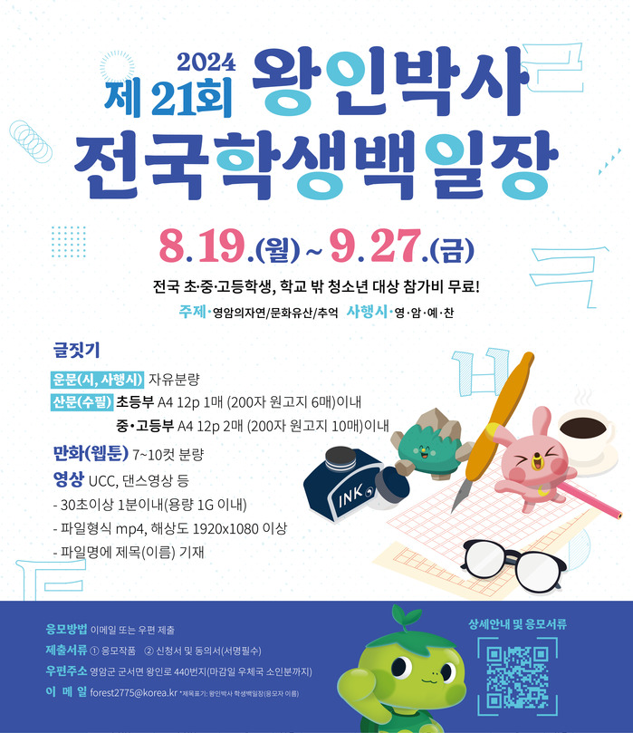 왕인박사 전국학생백일장은 전국 초·중·고등학생과 학교밖청소년이면 누구나 무료로 참가할 수 있다.