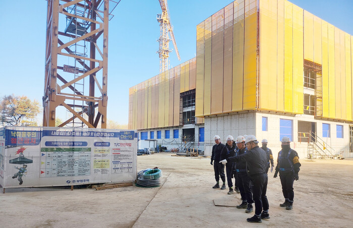 | ▲ 부영그룹이 건설현장에서 동절기 안전사고 예방을 위한 점검을 실시하고 있다. (사진=부영그룹 제공) |