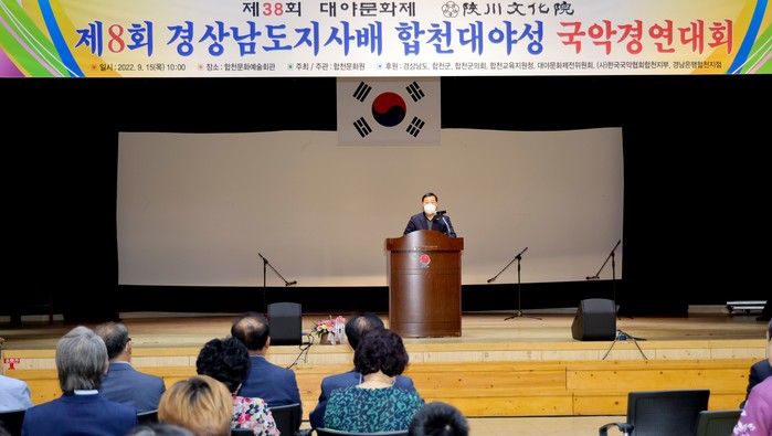 김윤철 합천군수는 인사말을 통하여 ‘이번 대회를 계기로 국악인들의 역량 강화와 회원 간의 정보 교환 및 화합을 통해 국악예술이 더욱 발전할 수 있는 계기가 될 것으로 기대한다’ 라고 하였다.