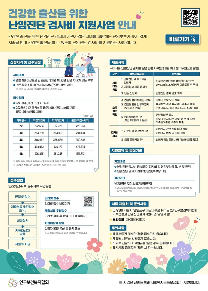 인구보건복지협회가 추진하고 있는 ‘난임 진단 검사비 지원사업’은 난임 부부가 늦지 않게 시술을 받아 건강한 출산을 할 수 있도록 지원하기 위해 마련됐다.